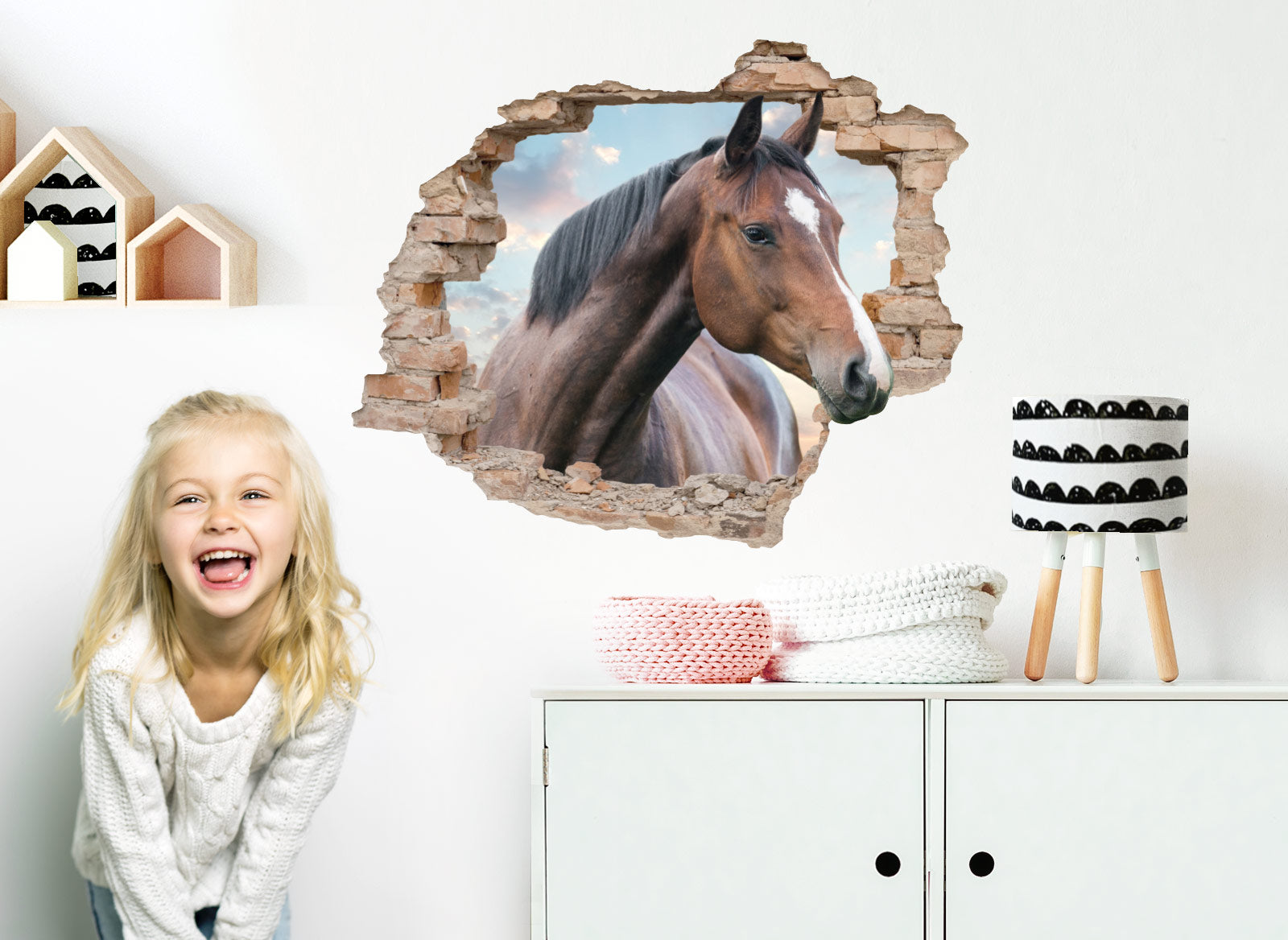 Wandtattoo 3D Loch in der Wand mit Pferdekopf