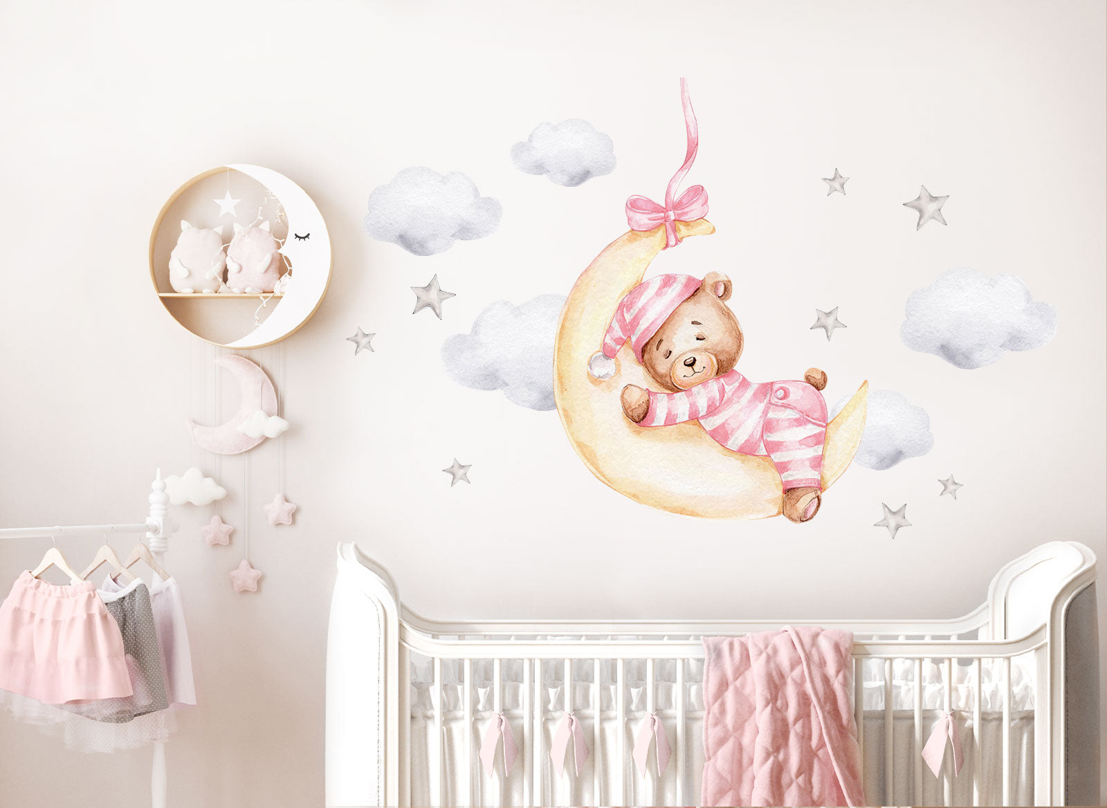- M - 82 x 53 cm und der Teddy mit Mond hat eine Größe von 36 x 51 cm