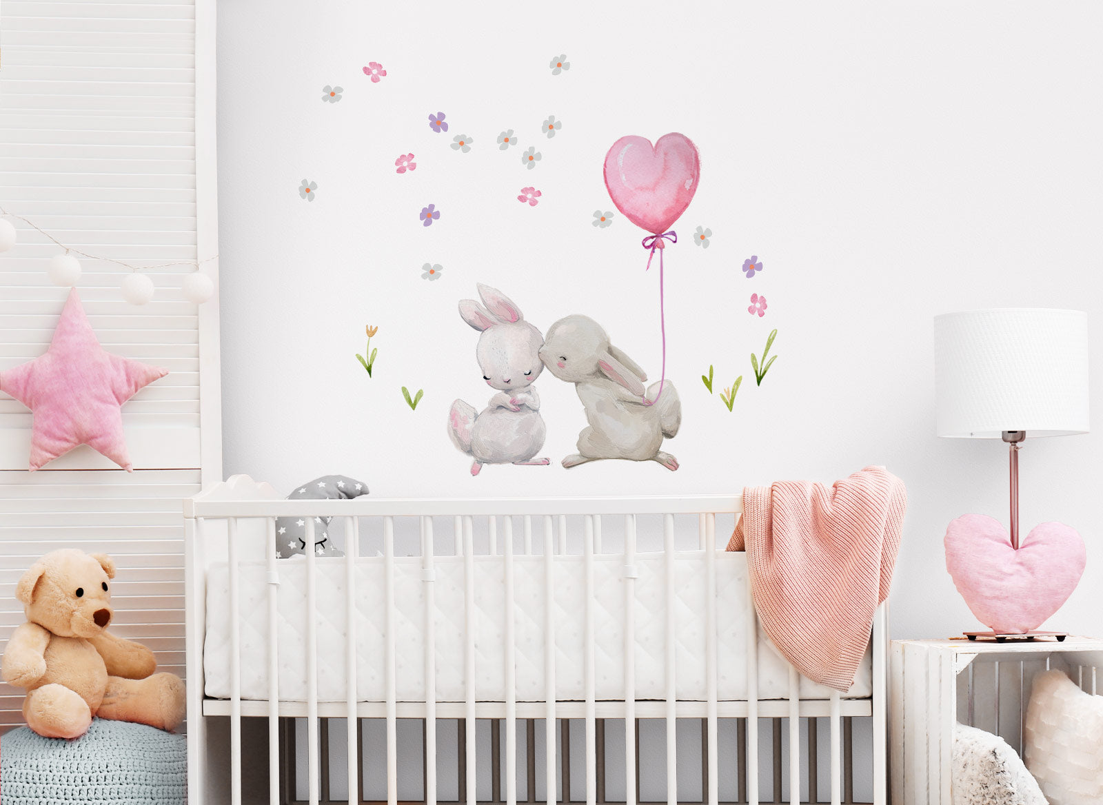 Little Deco Wandtattoo Küssende Hasen mit Luftballon Rosa Herzform DL230