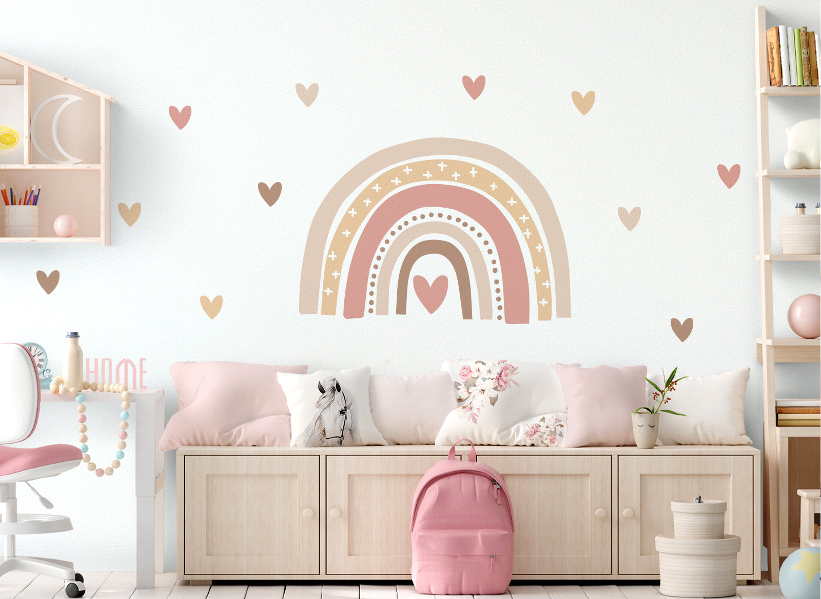 Little Deco Wandtattoo Regenbogen mit Herzen beige rosa braun DL935