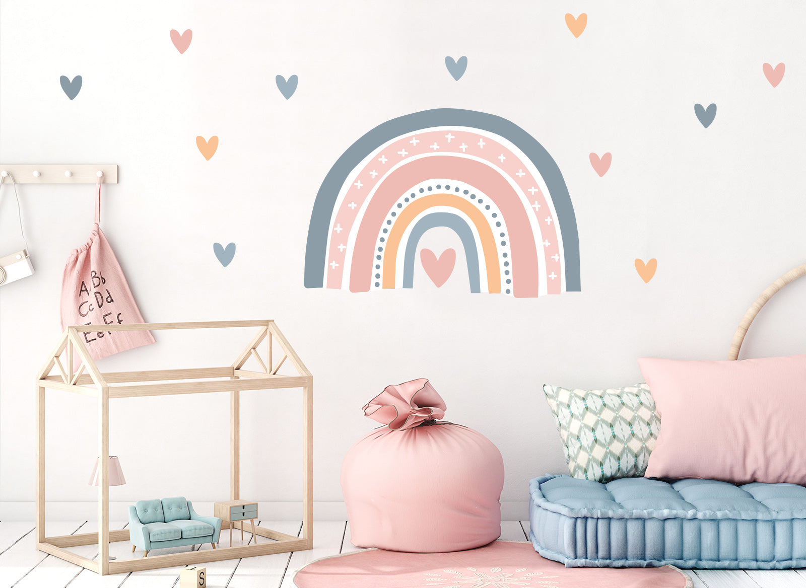 Little Deco Wandtattoo Regenbogen mit Herzen blau rosa gelb DL938