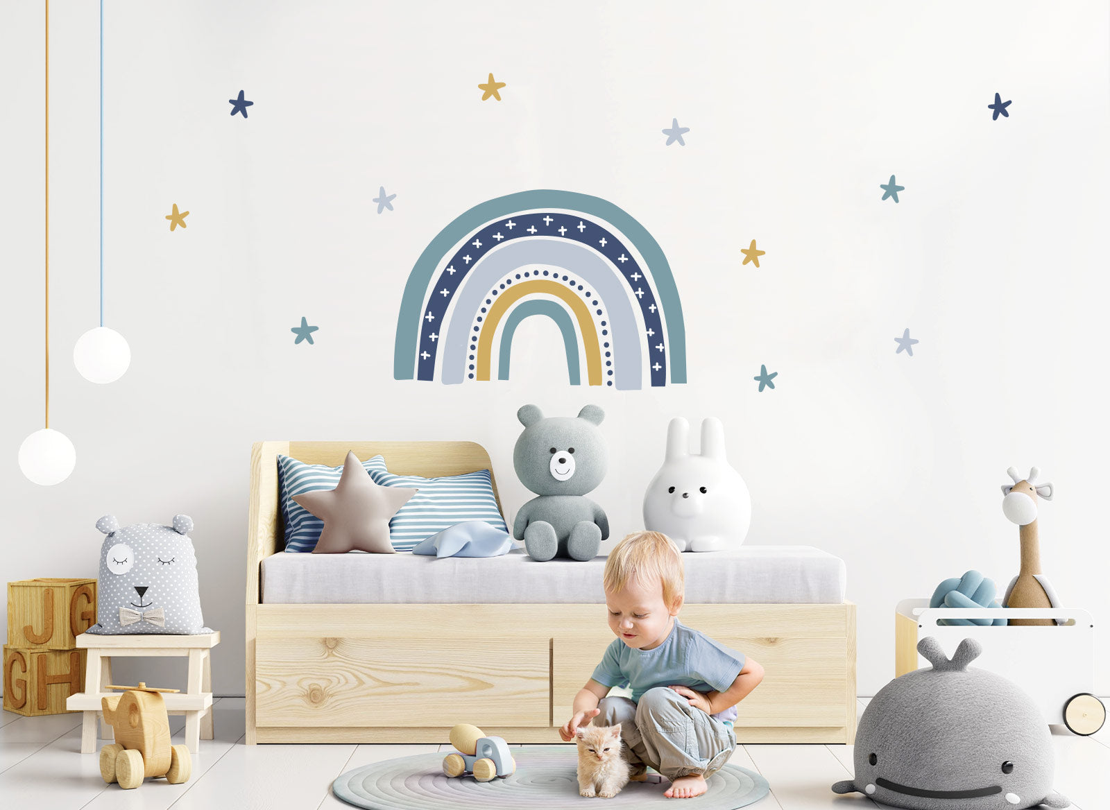Little Deco Wandtattoo Regenbogen mit Sternen blaugrau gelb DL922