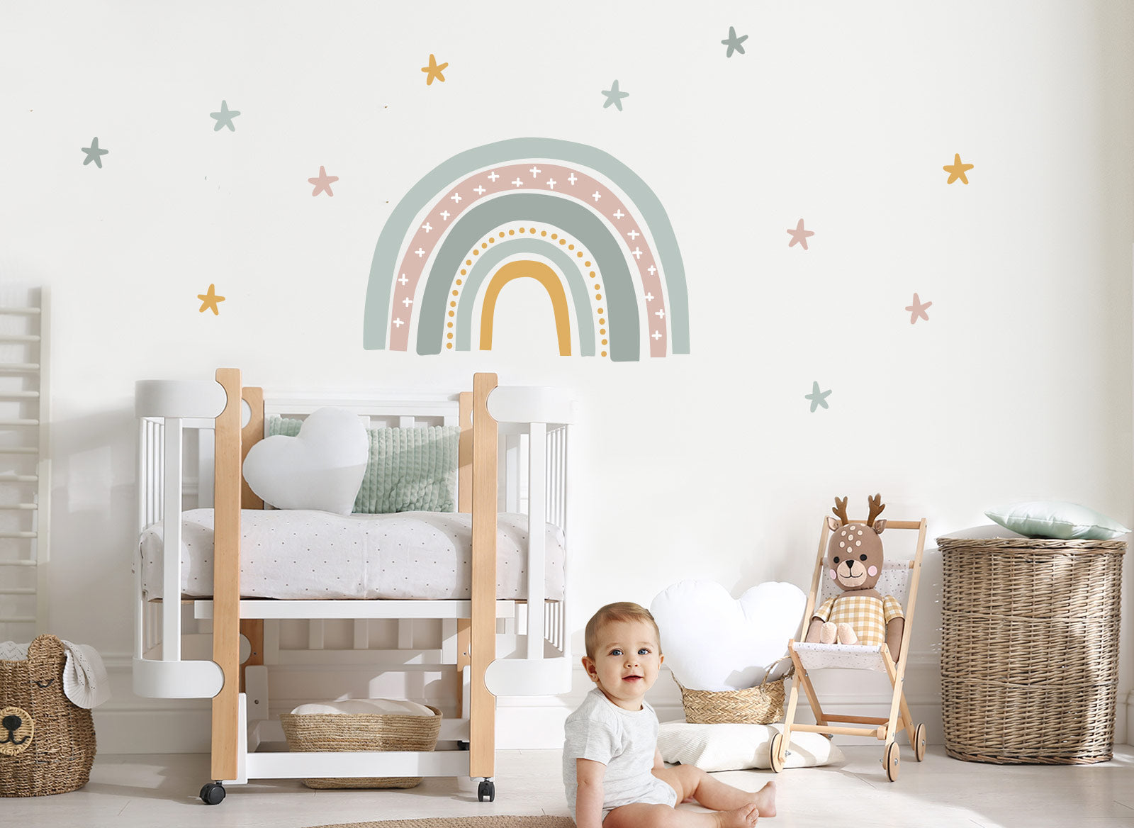 Little Deco Wandtattoo Regenbogen mit Sternen hellblau rosa gelb DL921