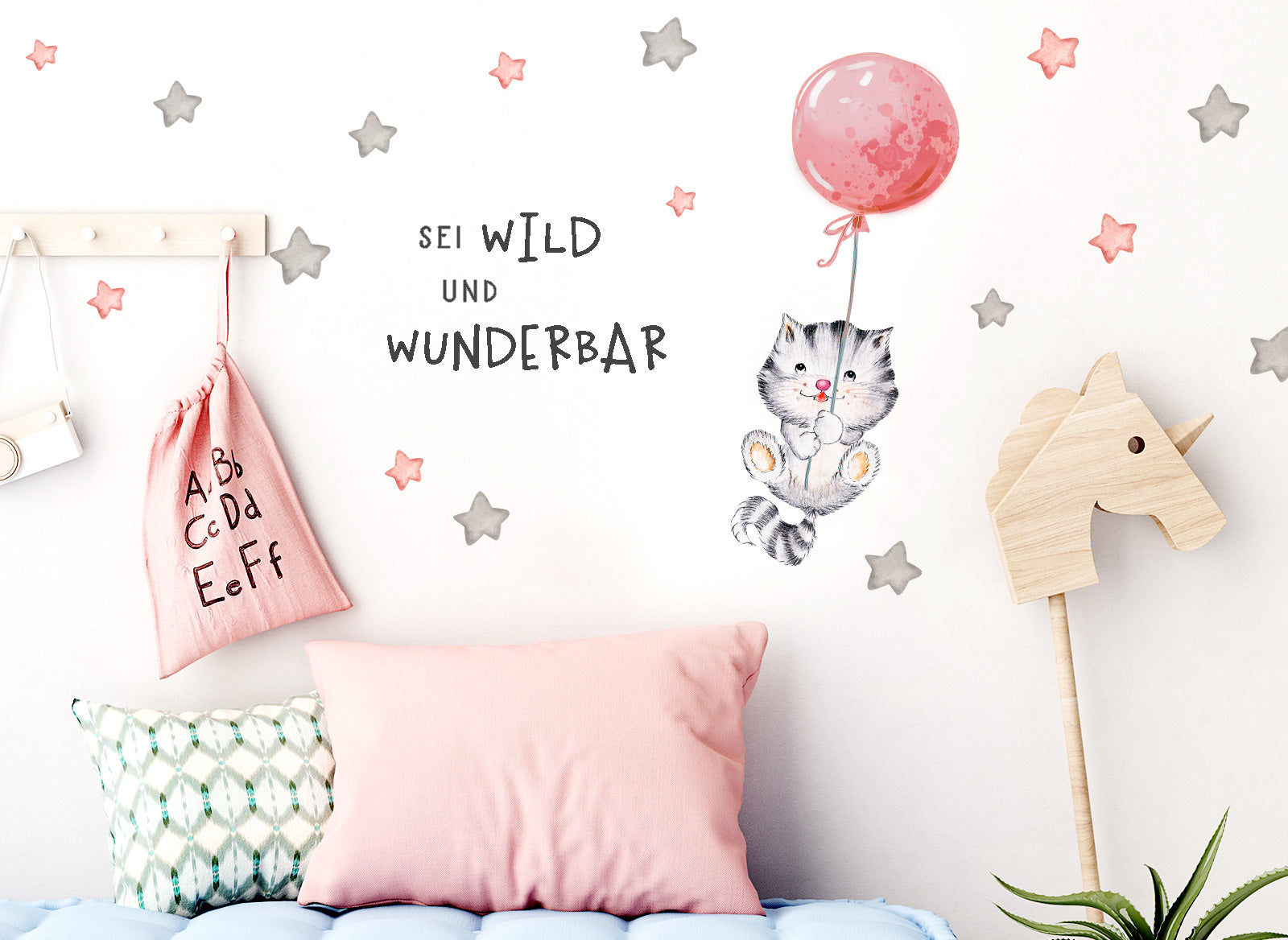 Wandtattoo Sei wild & Katze mit Luftballon