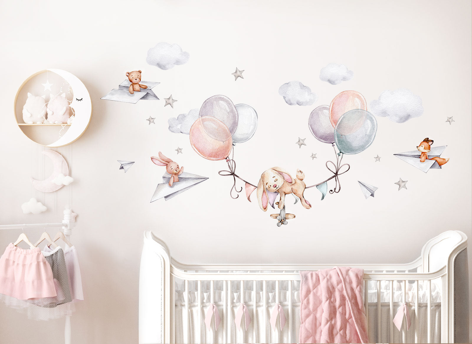 - M - 101 x 52 cm und der Hase mit Ballons hat eine Größe von 53 x 38 cm