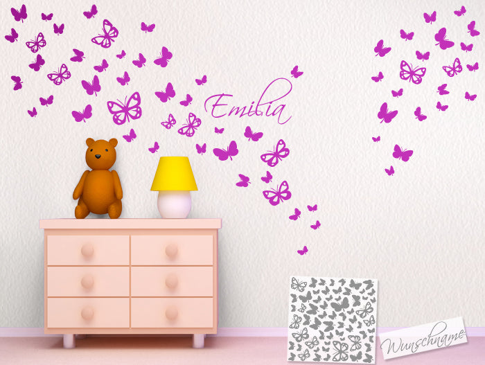Wandtattoo - 63 Schmetterlinge + Wunschname W786