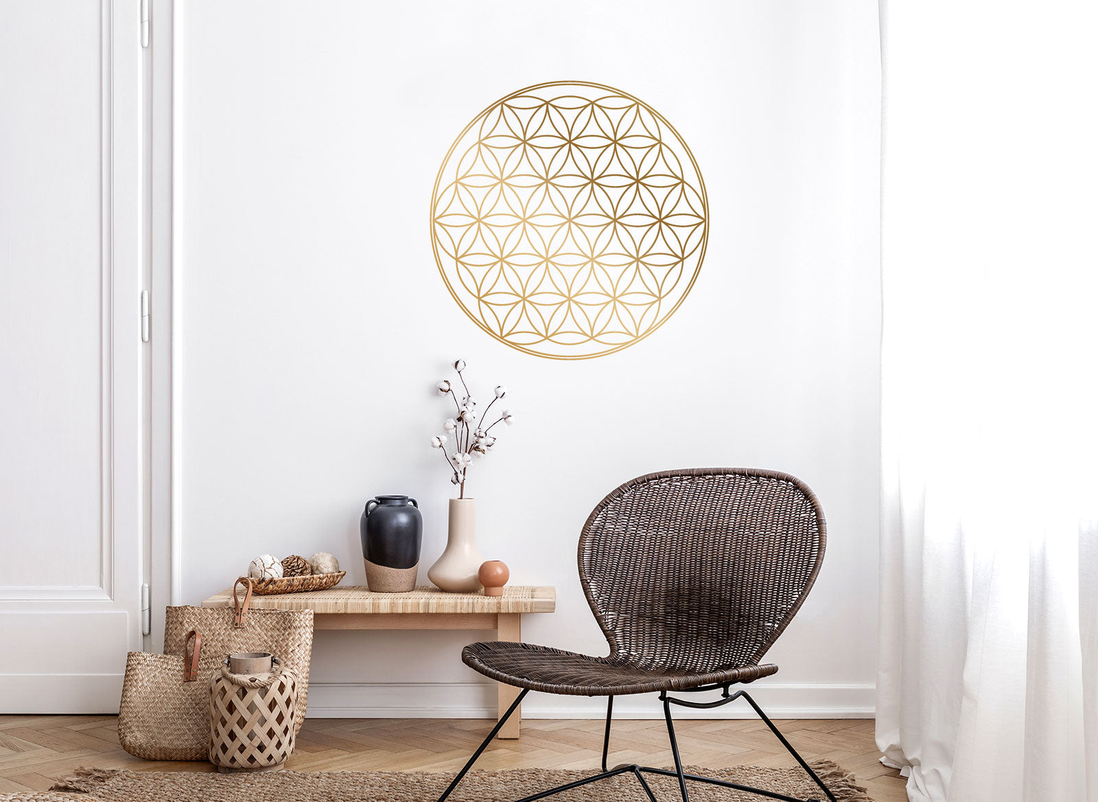 Dieses einzigartige Wandtattoo stellt die Blume des Lebens, die seit Jahrtausenden auf der ganzen Welt als Symbol des Lebens gilt, dar. Dem Zeichen wird nachgesagt, dass es harmonisierend, beschützend und energetisierend wirken soll. Auf diesem Muster ist alles im Universum aufgebaut und alles kann darauf zurückgeführt werden. Das Symbol besteht aus 19 Kreisen und ist in 34 unterschiedlichen Farben, die Sie in der Kategorie Farbtabelle/Hinweise finden, erhältlich. Sollten Sie Probleme während des Anbringens haben, schauen Sie sich bitte unsere ausführliche Videoanleitung auf unserer Internetseite an.