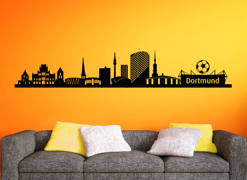 Sie möchten Ihre Verbundenheit mit der größten Stadt im Ruhrgebiet zeigen oder die Liebe zu Borussia Dortmund? Dann zeigen Sie all dies mit diesem Wandtattoo auf stilvolle Art und Weise. Denn dieses Wandtattoo zeigt die Skyline mit all ihren Sehenswürdigkeiten und vielen feinen Details. Auch der Name "Dortmund" wurde geschmackvoll in das Abbild der Skyline integriert. Ein besonders schmuckes Detail ist der Fußball über dem Signal Iduna Park. Das gesamte Wandtattoo wirkt durch die abgestimmten Details sehr harmonisch und ist somit ein echtes Highlight für jede Wand.