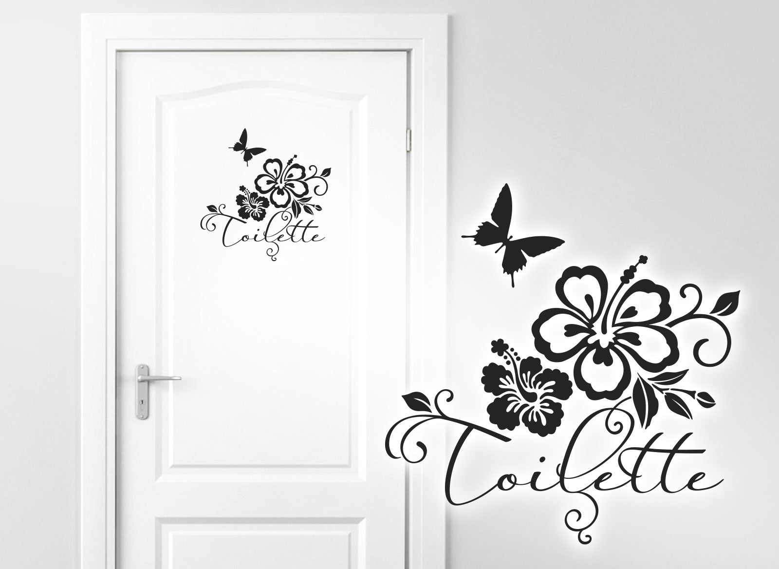 Dieses schöne Wandtattoo sorgt dafür, dass Sie von Ihren Gästen nie wieder nach dem Weg zum WC gefragt werden, denn durch diesen schönen WC-Aufkleber finden sie Ihr stilles Örtchen ganz alleine. Die Hibisken mit dem Schmetterling und der verschnörkelten Schrift verschönern zusätzlich jede noch so langweilige Badezimmer- oder Klotür. Zur Auswahl stehen außerdem 34 unterschiedliche Farben. Durch die Wahl einer knalligen Farbe können Sie in Ihren vier Wänden einen Farbklecks schaffen und somit Ihre Wohnung noch dekorativer gestalten.