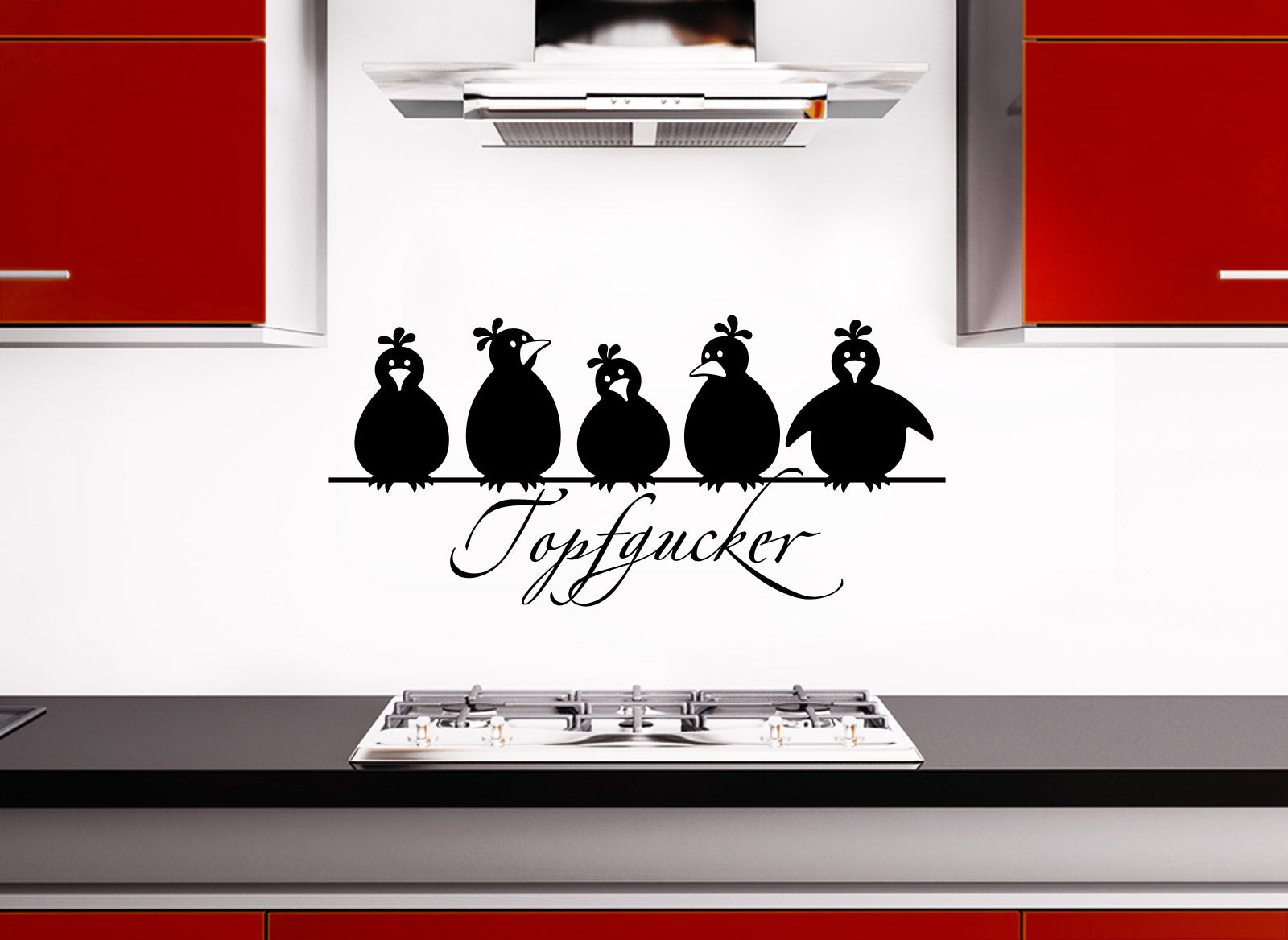 Wandtattoo Spruch Topfgucker + 5 Vögel W862