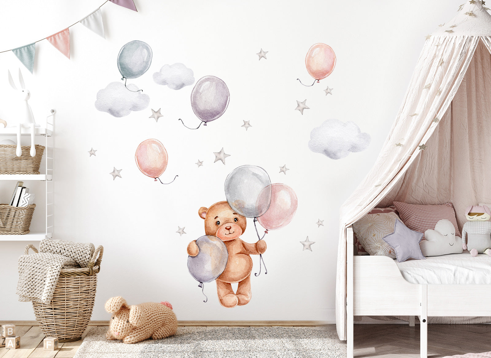 - M - 81 x 77 cm und der Teddy mit Ballons hat eine Größe von 31 x 41 cm