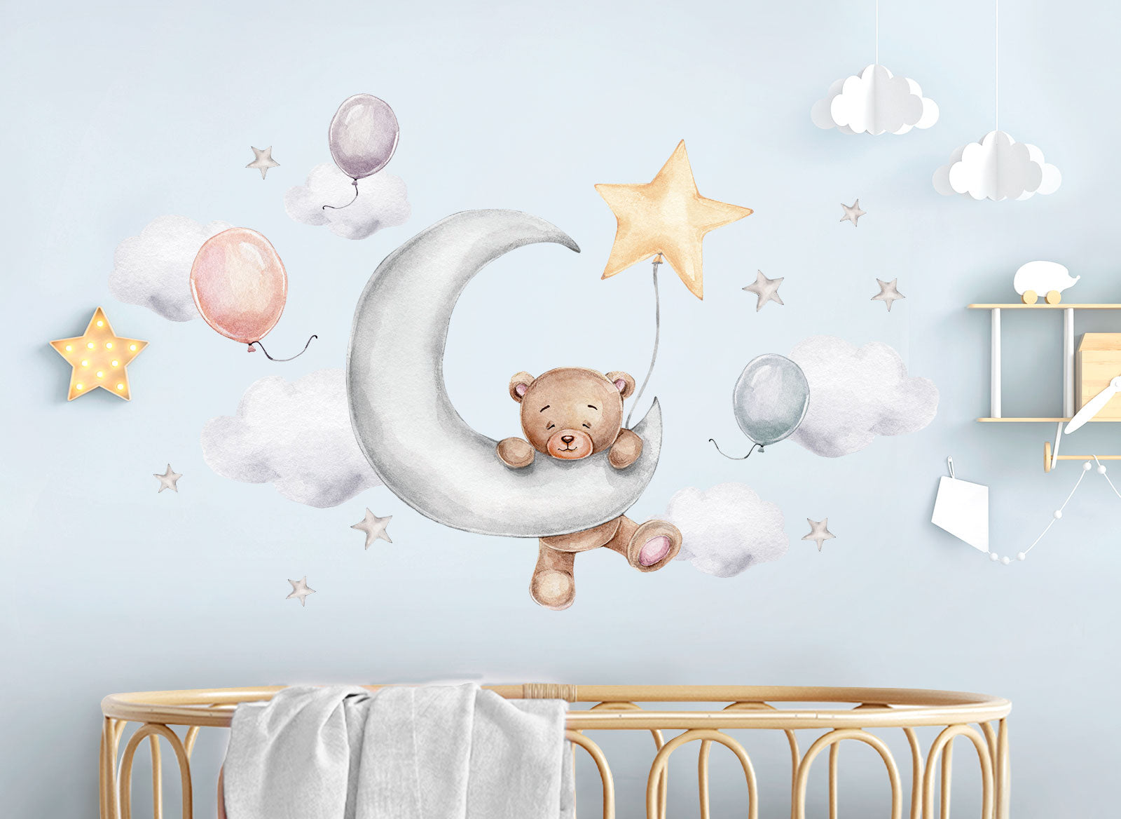- M - 77 x 48 cm und der Teddy mit Mond hat eine Größe von 31 x 37 cm