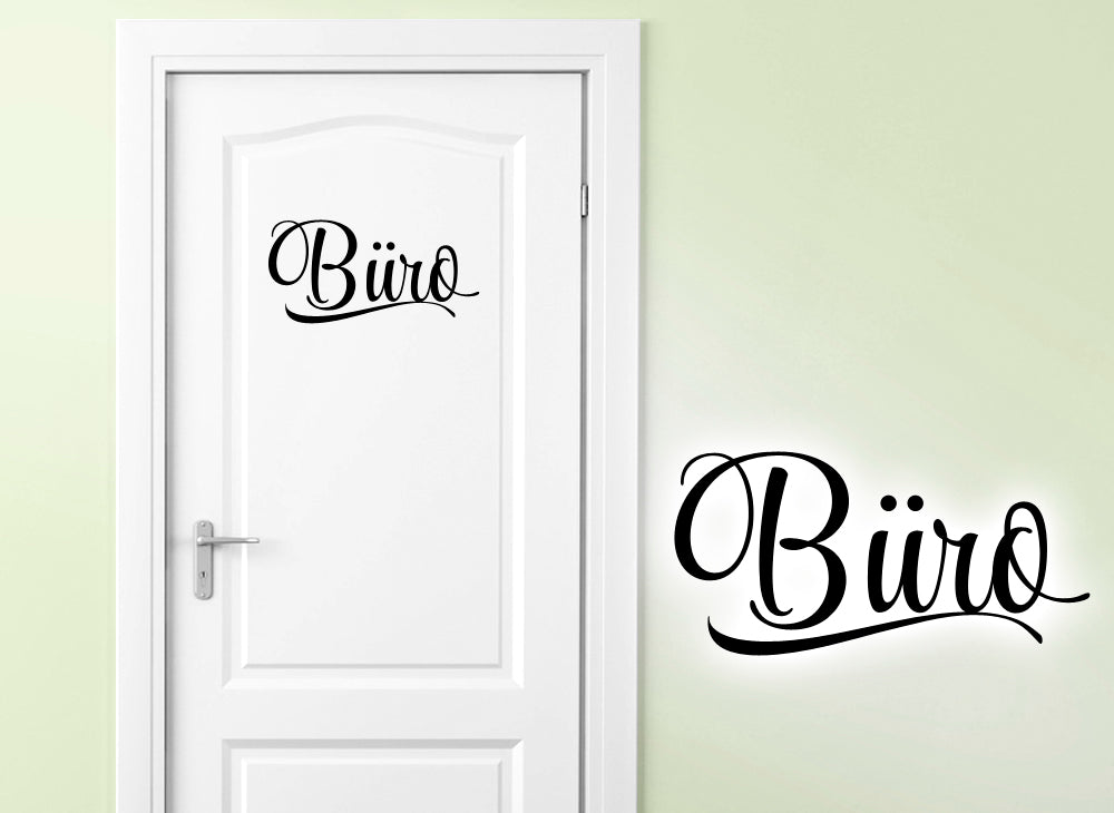 Der elegant geschwungene Schriftzug verleiht dem Türaufkleber "Büro" eine freundliche Ausstrahlung.