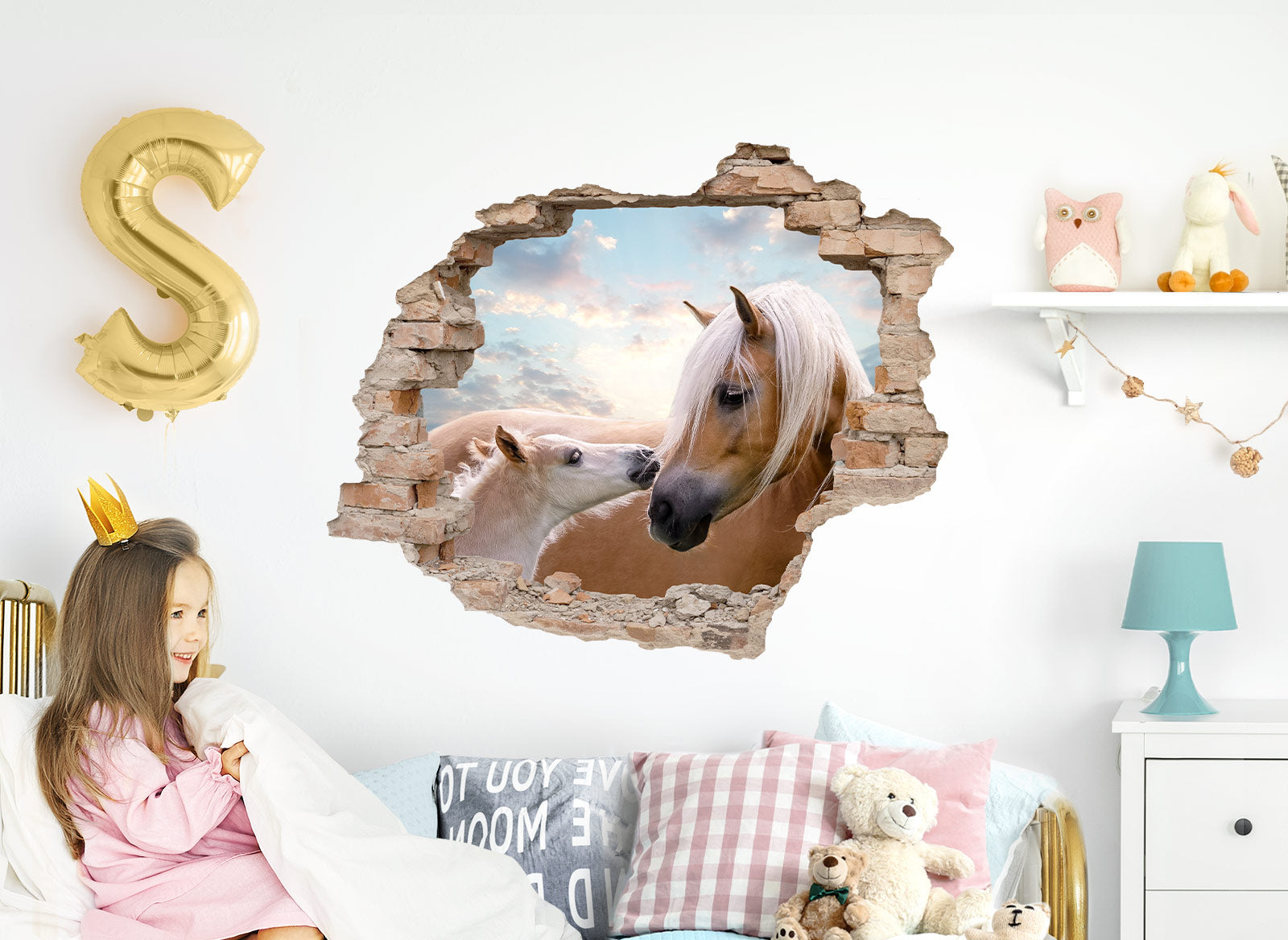 Wandtattoo 3D Loch in der Wand mit Pferden