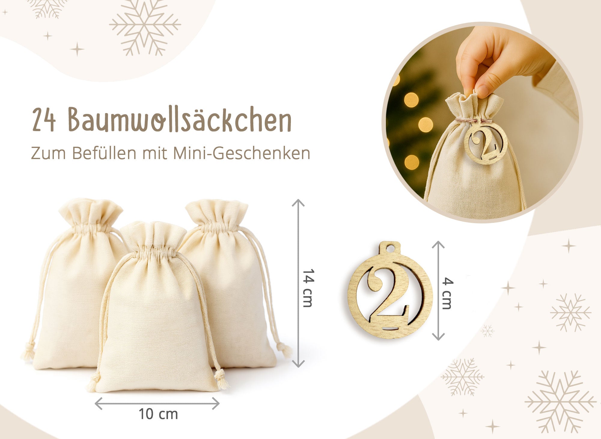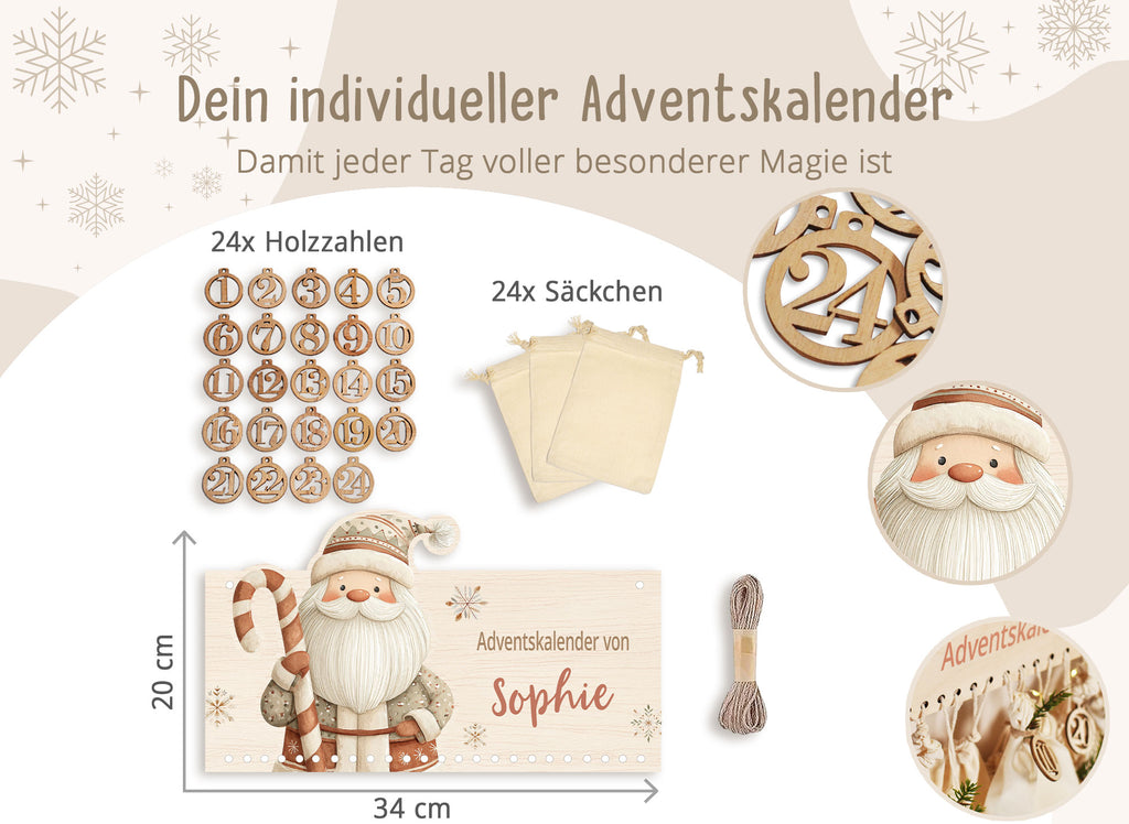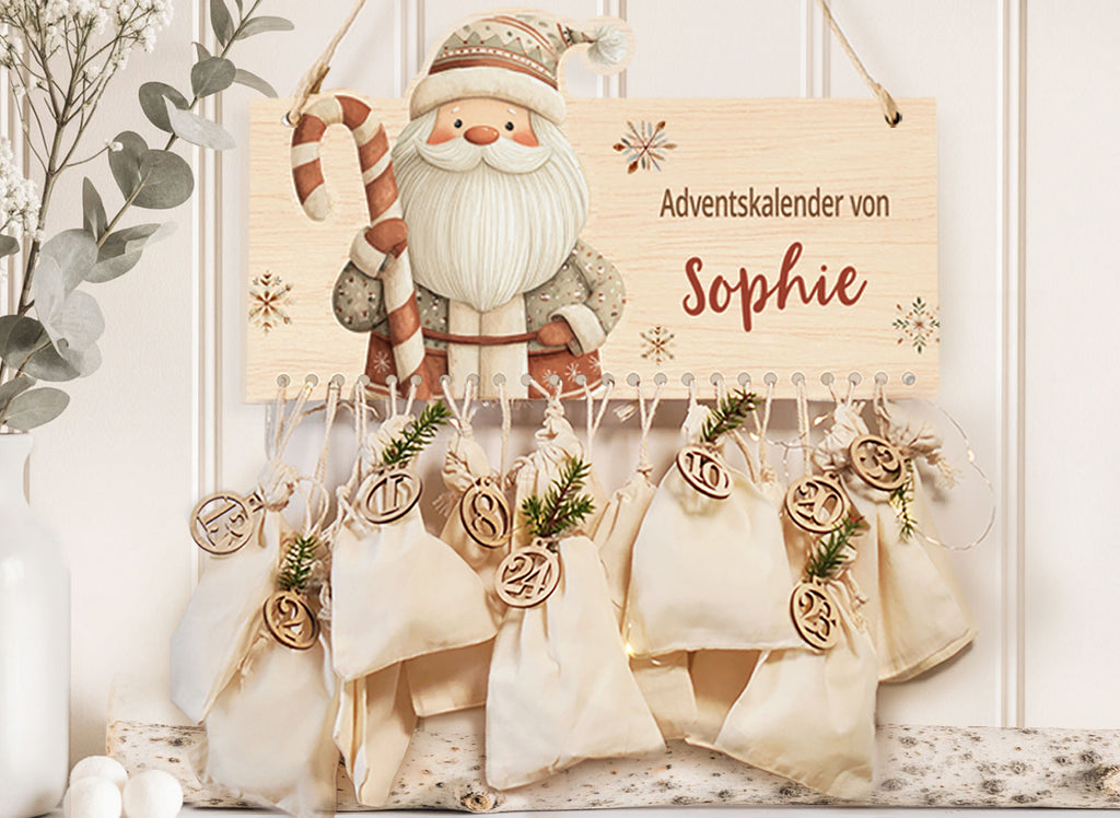 • Nur Adventskalender (Holzschild): Perfekt, wenn ihr Säckchen schon habt und eure eigene Optik umsetzen möchtet.