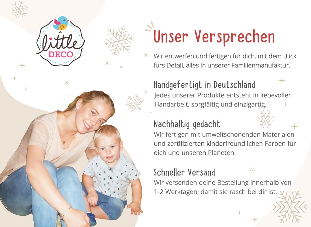 Manchmal ist es nur ein Augenblick wunderschöner Vorfreude, wenn kleine Finger ein Säckchen voller Erwartung öffnen, ein Lächeln, das den Raum heller macht und morgen ist schon wieder ein Türchen dran. Unsere personalisierte Adventskiste trägt euren Wunschnamen und begleitet euch durch vierundzwanzig Tage voller kleiner Freuden.