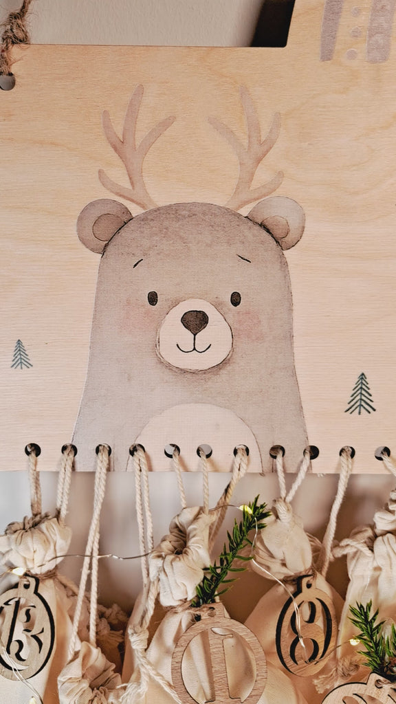 • Nur Adventskalender (Holzschild): Perfekt, wenn ihr Säckchen schon habt und eure eigene Optik umsetzen möchtet.