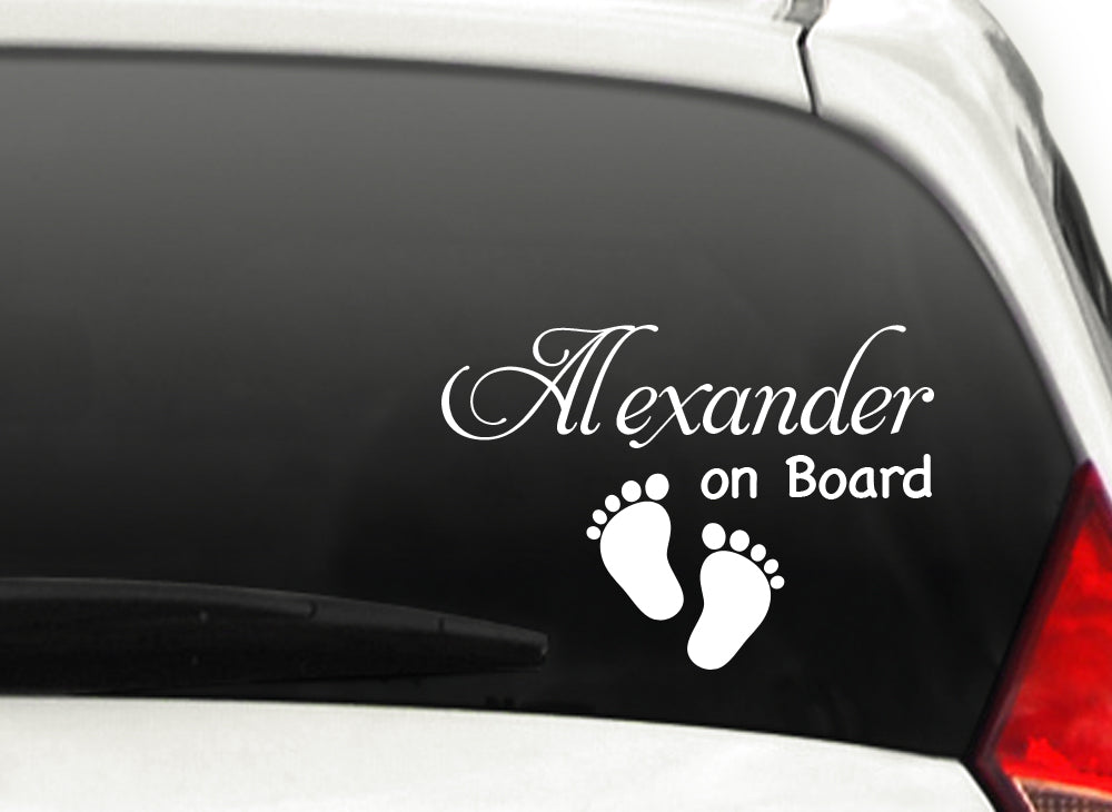 Autoaufkleber Baby on Board + Wunschname und Fußabdrücke X7102