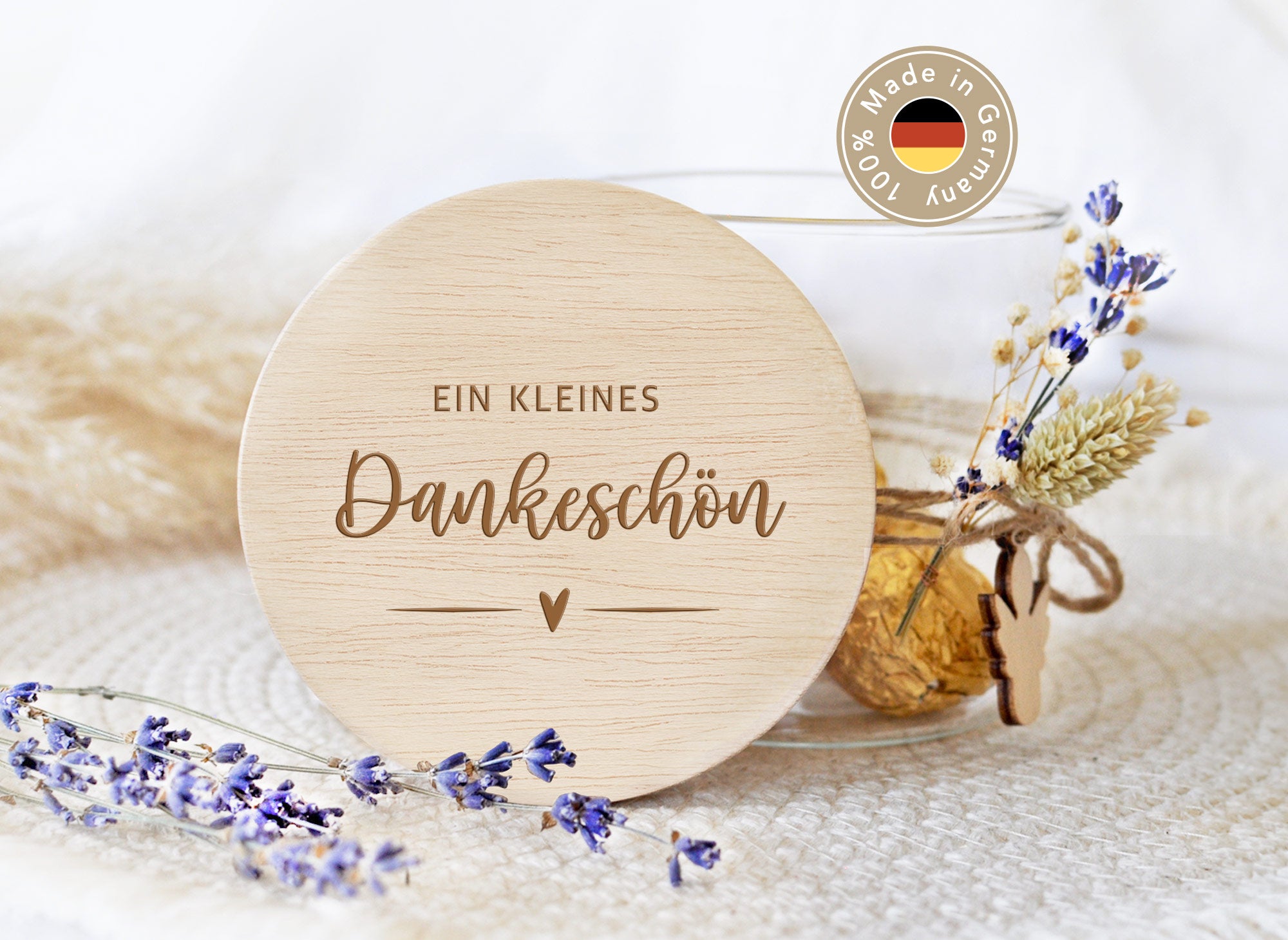 - Hochwertige Lasergravur mit dem Spruch: "Ein kleines Dankeschön"