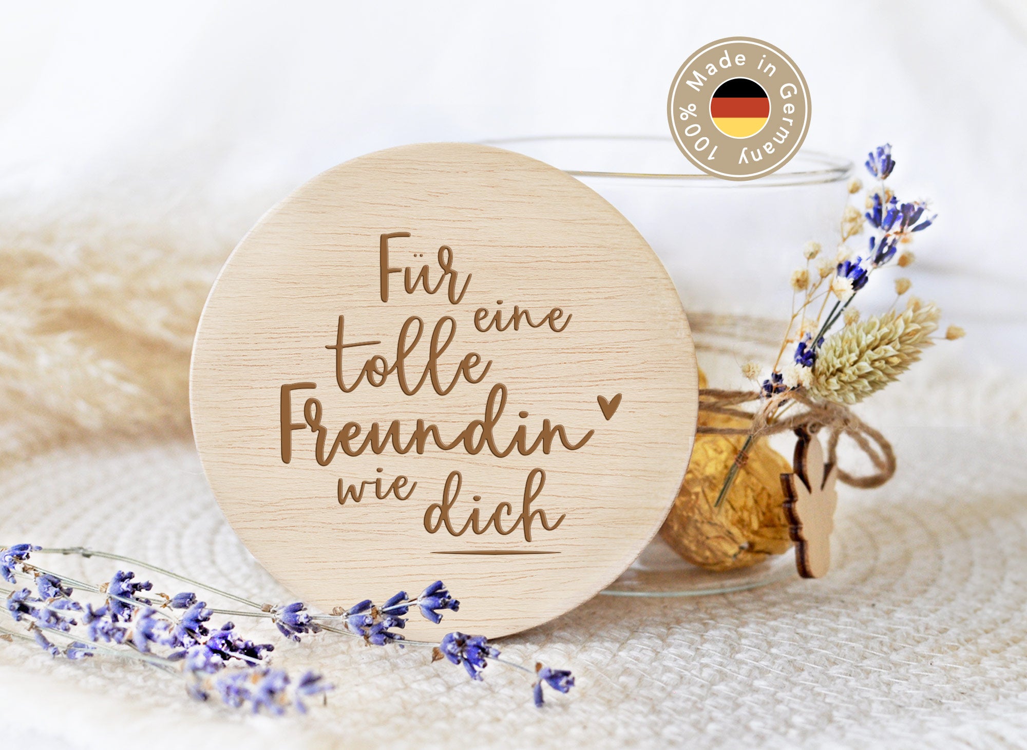 • Hochwertige Lasergravur mit dem Spruch: "Für eine tolle Freundin wie dich"