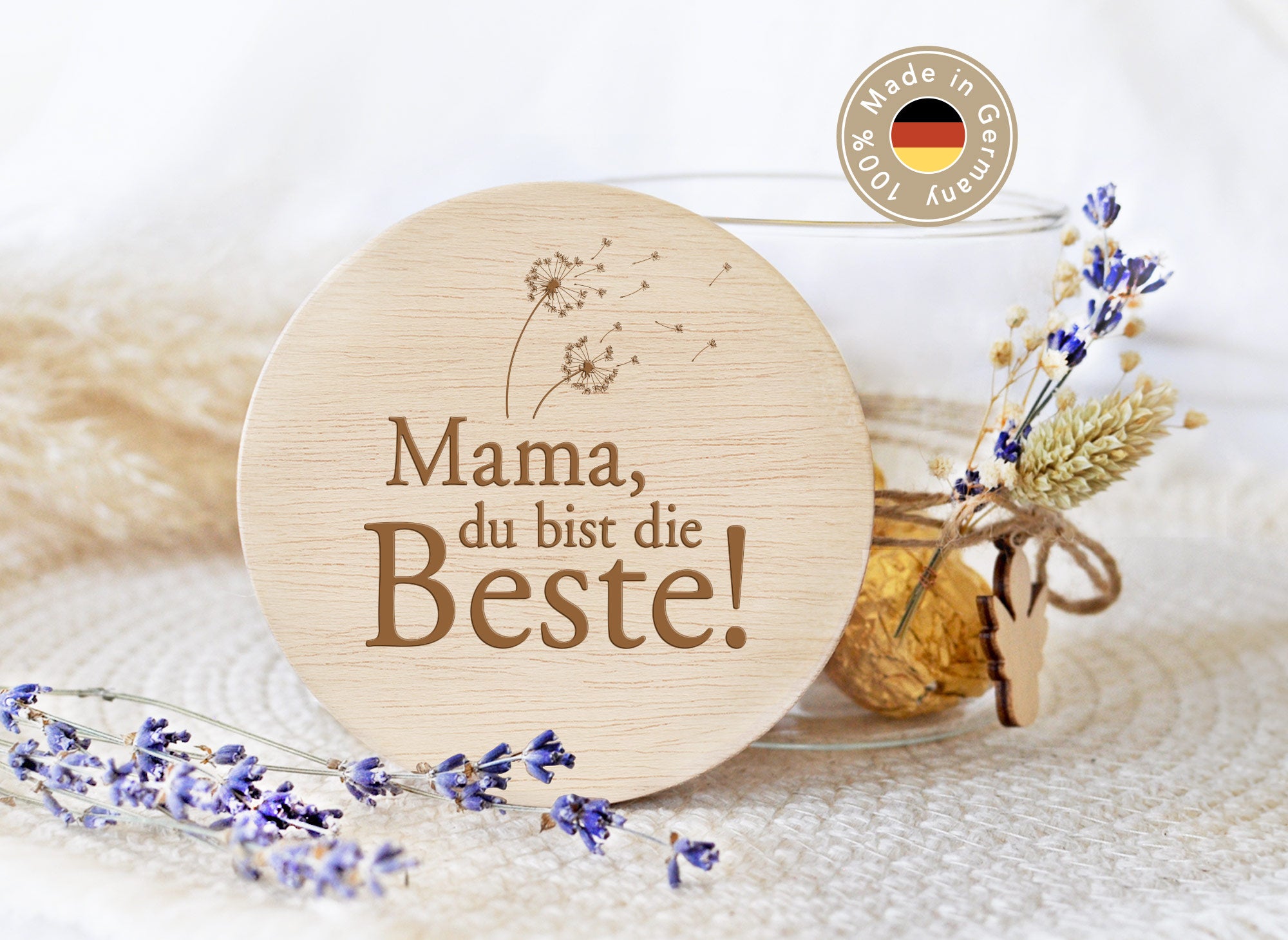 - Hochwertige Lasergravur mit dem Spruch: "Mama du bist die Beste!"