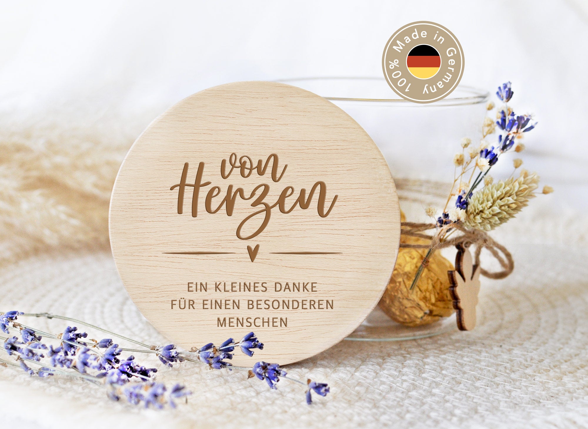 - Hochwertige Lasergravur mit dem Spruch: "von Herzen - ein kleines Danke für einen besonderen Menschen"