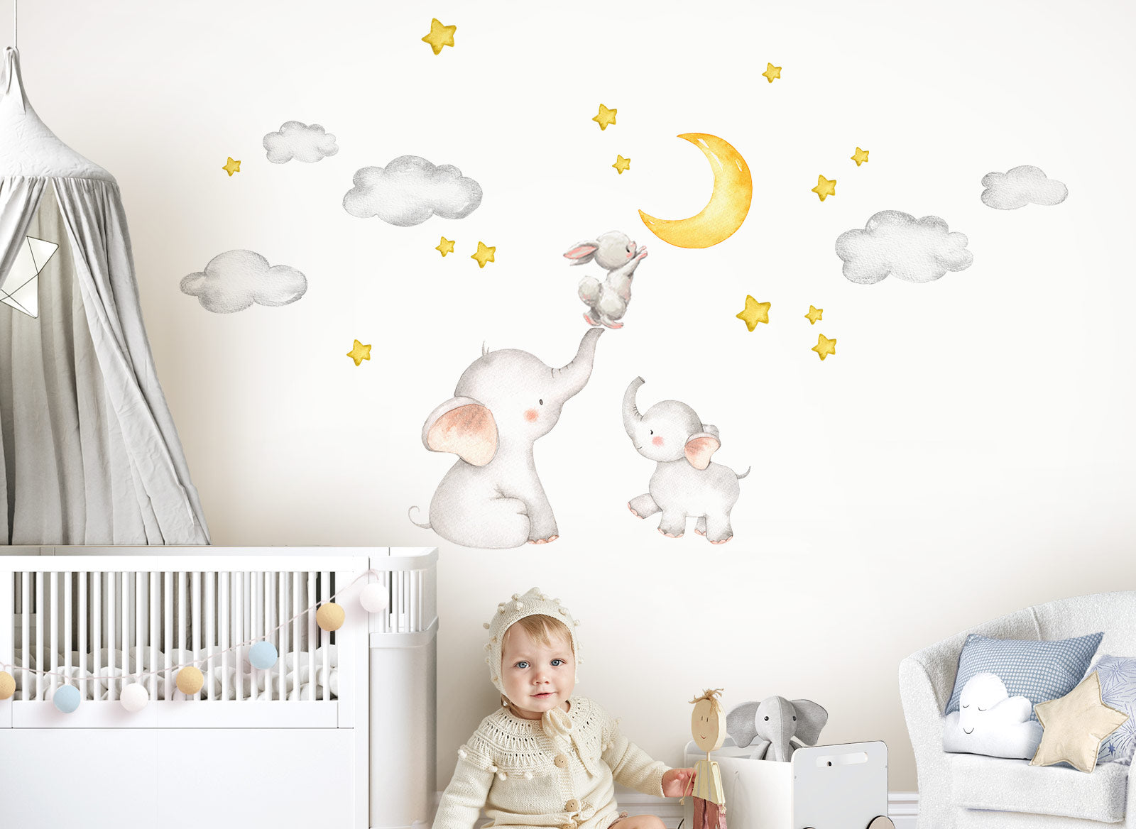 Little Deco Wall Decal Elephant & Rabbit with Moon and Stars DL463