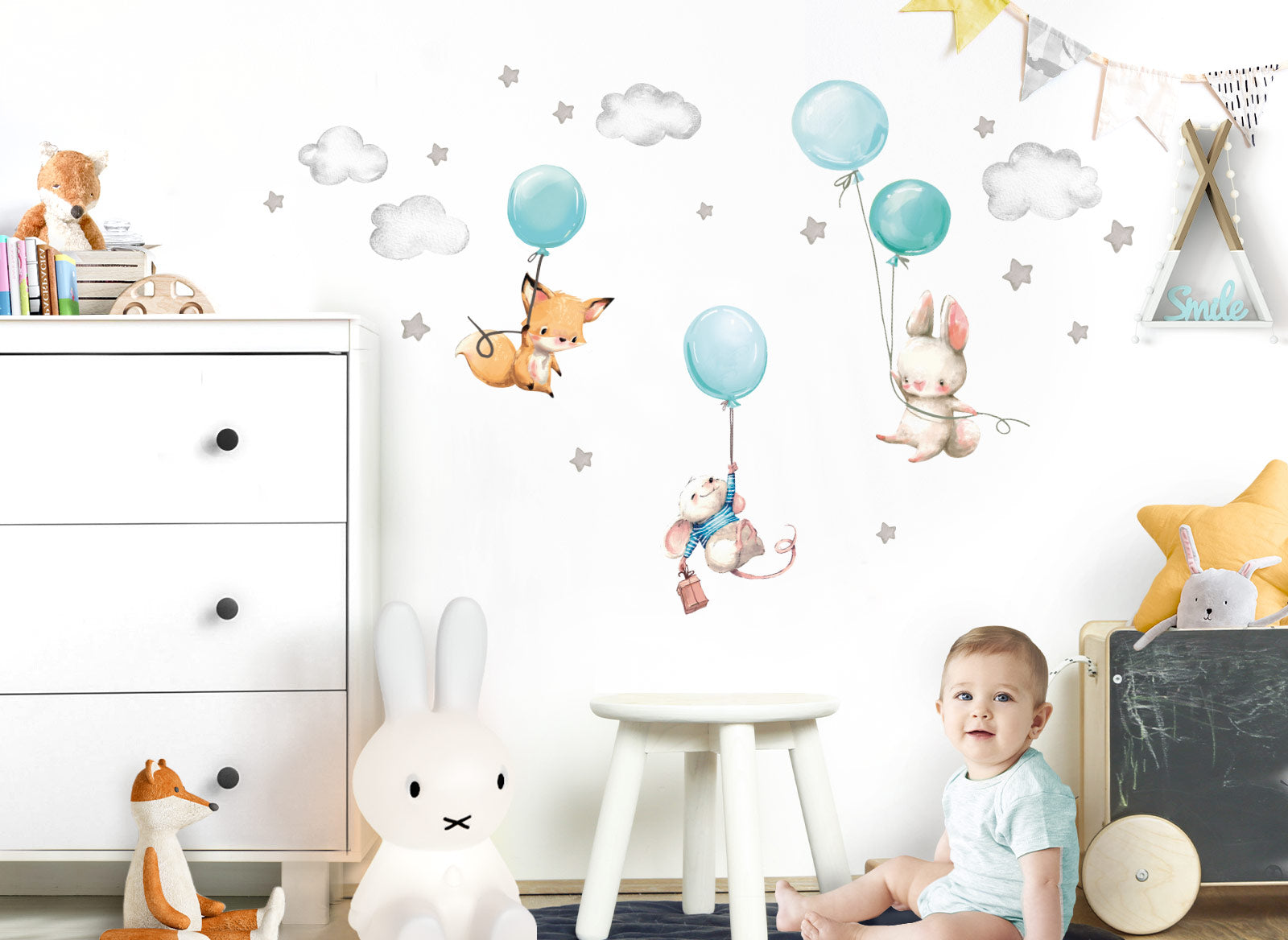 Little Deco Wall sticker fox mouse and rabbit with balloon DL610