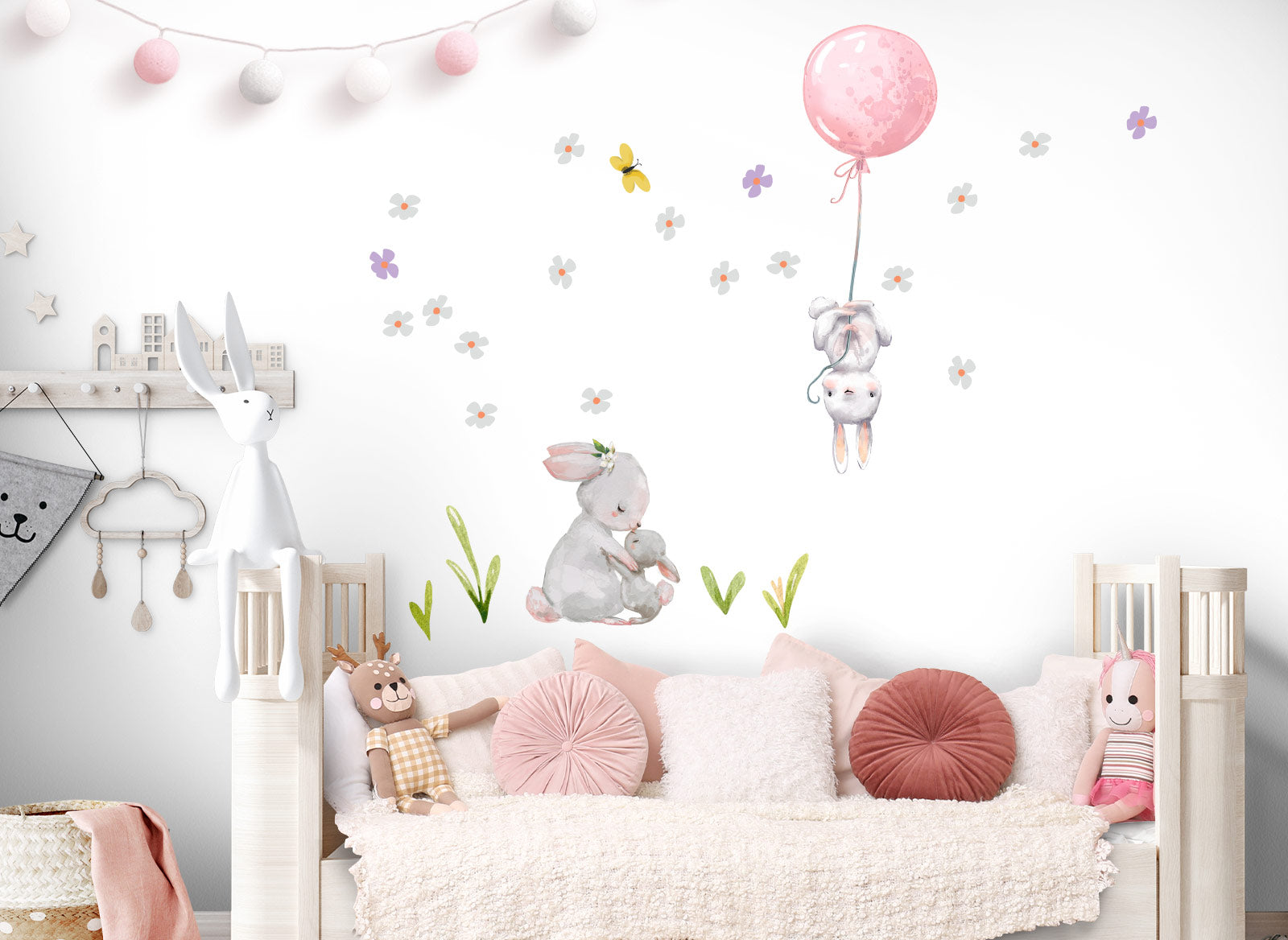- Medium - 103 x 103 cm and the bunny with balloon is 18 x 59 cm