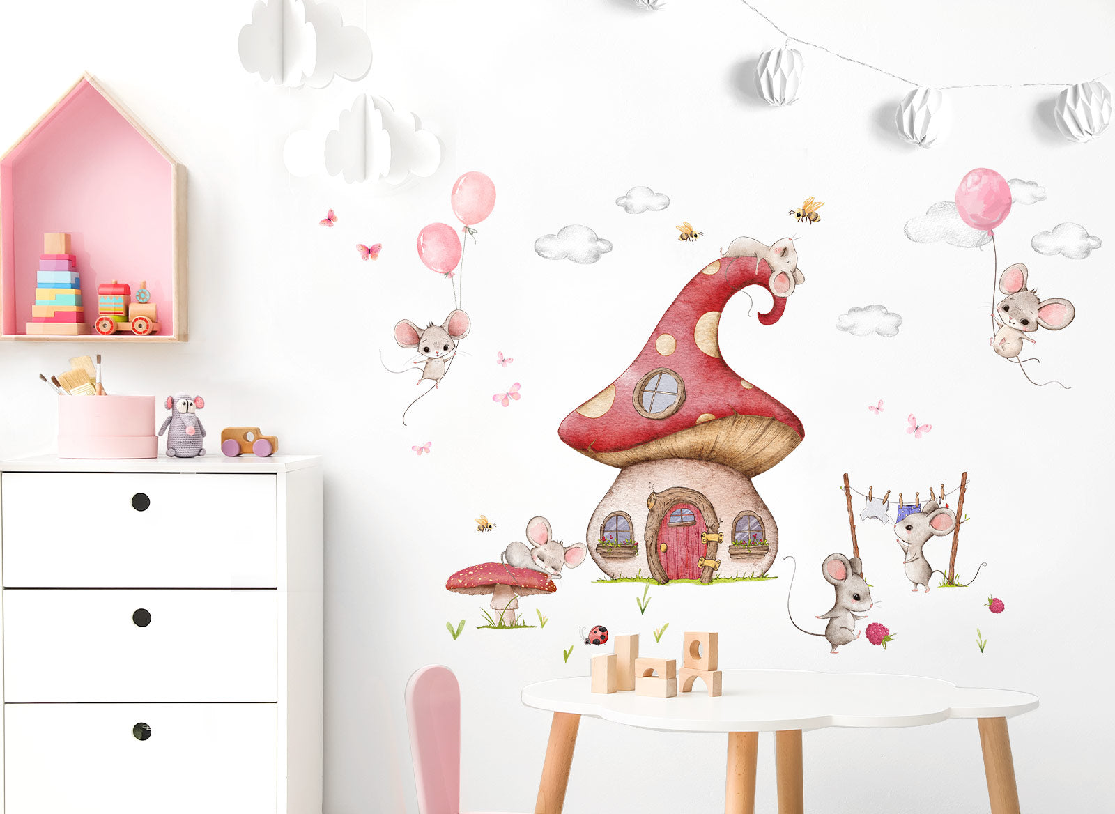 Little Deco Mice and mushroom house wall decal DL740