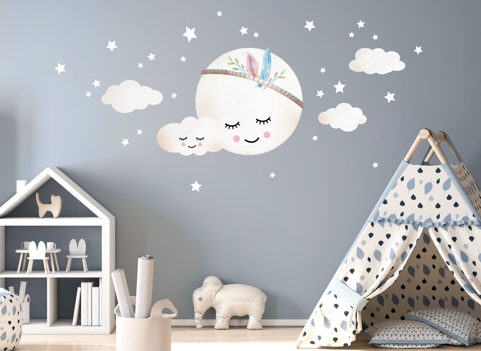 Little Deco Clouds Moon & Stars Wall Decal DL263