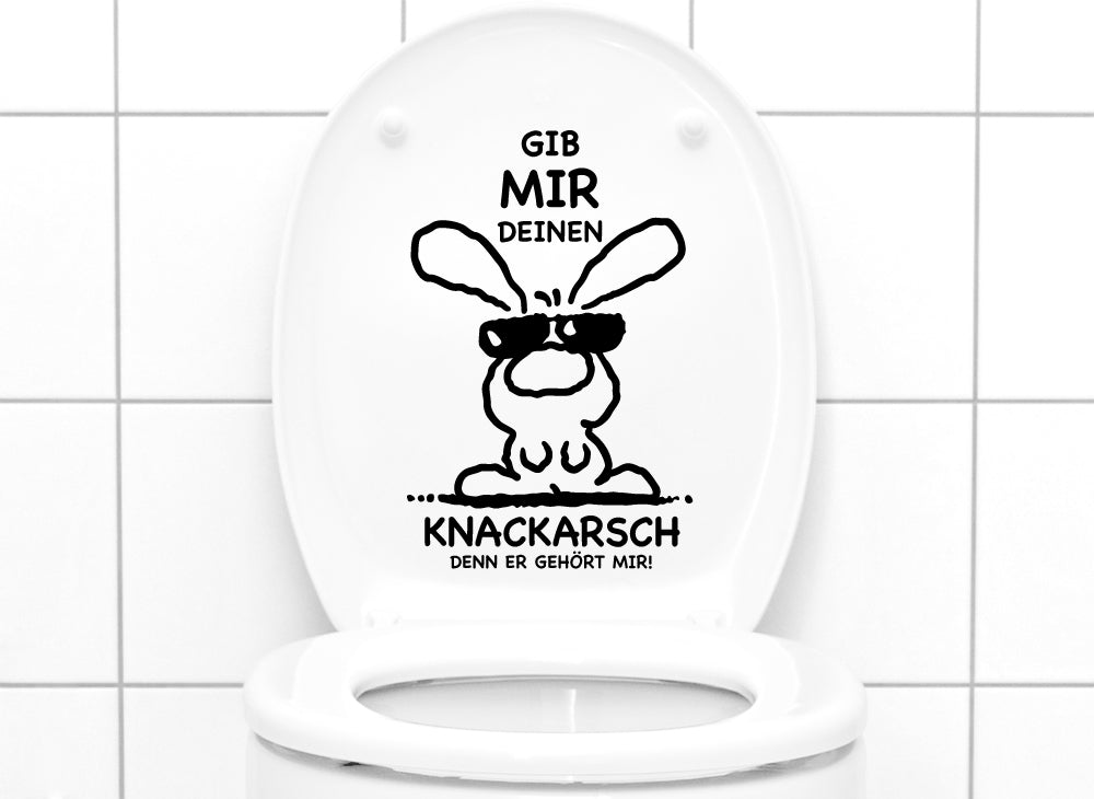 The saying "give me your tight ass because it's mine" is a fun way to spice up your bald toilet seat a bit. From plain black to brilliant blue to gold, you have the choice between 34 different colors. The material consists of semi-matt, self-adhesive vinyl film and our products are made by hand in Germany. After a simple application, going to the toilet can be turned into an entertaining experience with this original adhesive.