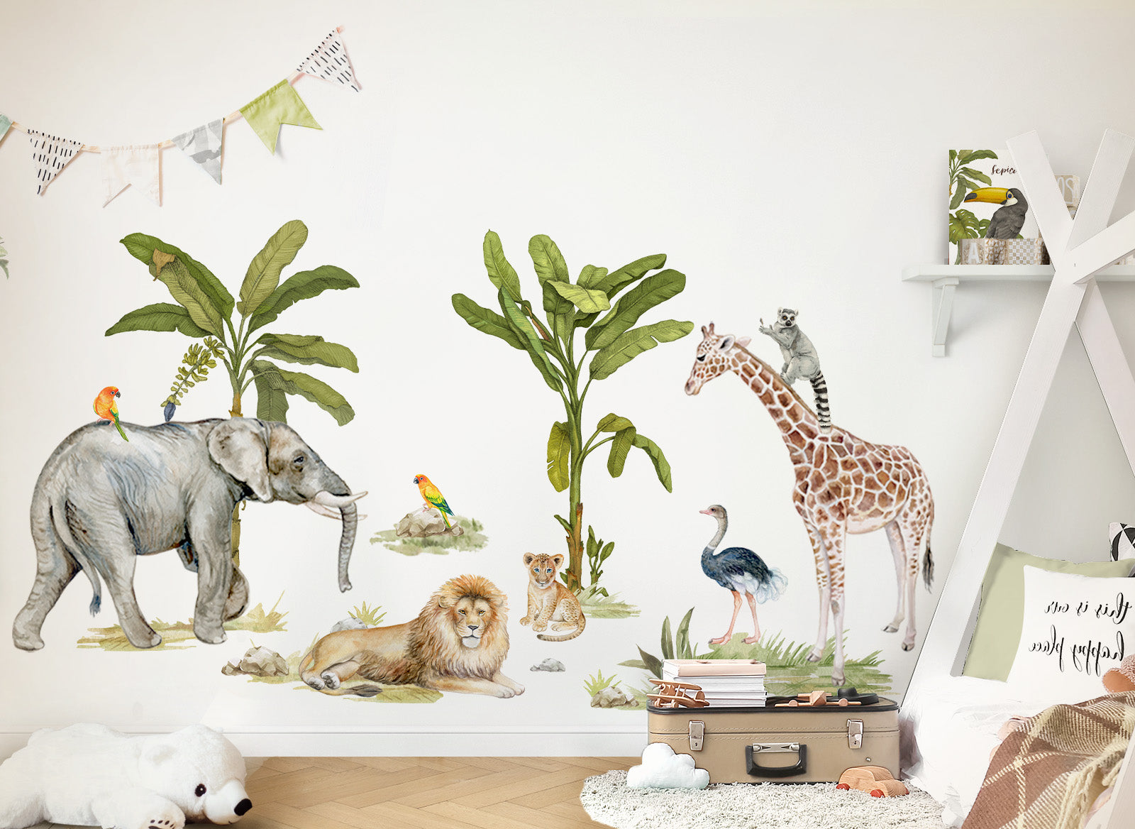 Little Deco Wall Decal Safari Giraffe Elephant Lion & Trees DL698