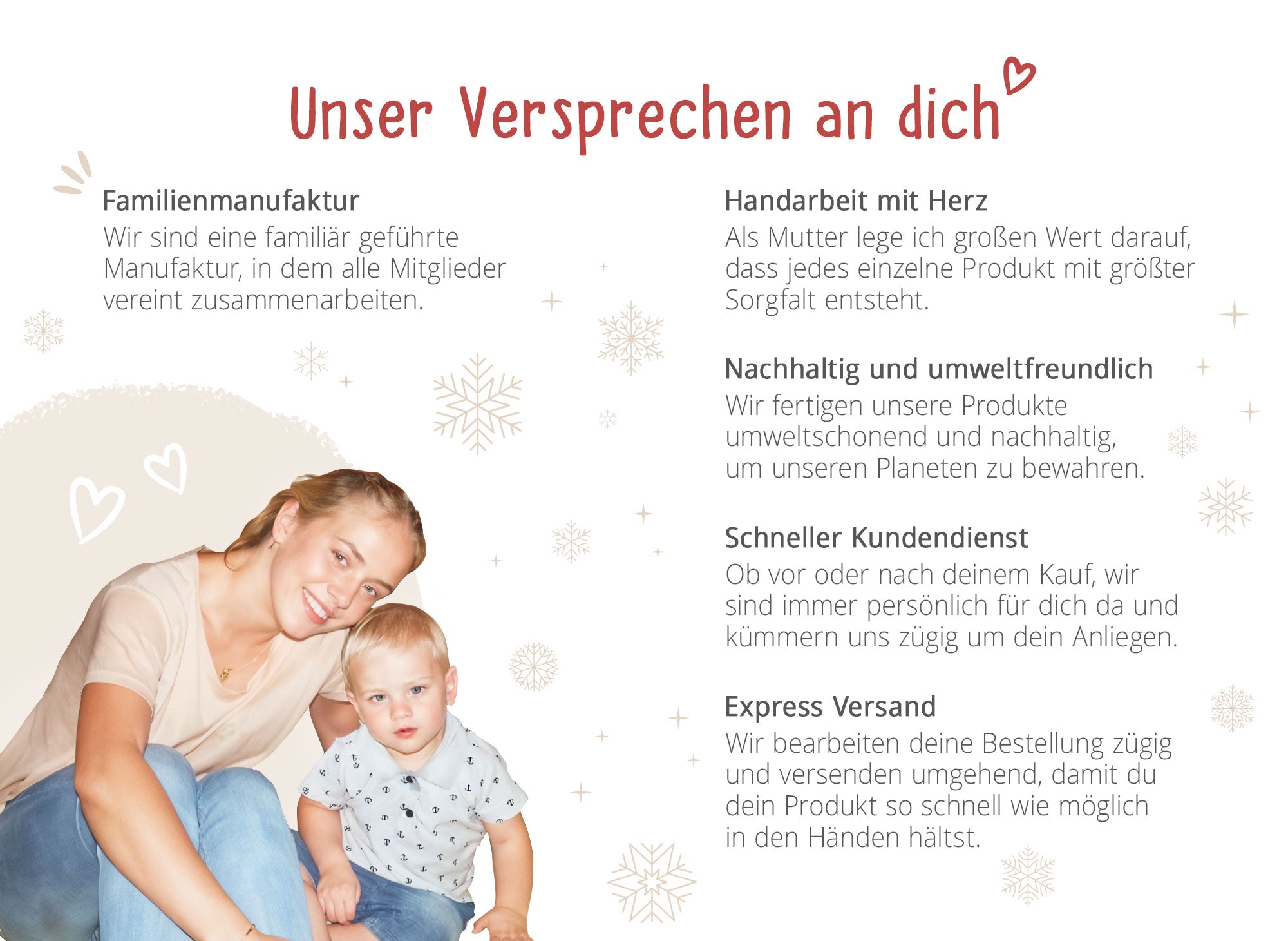 Unser Geschenk wird aus hochwertigem Buchenholz gefertigt. Der Druck ist nach deutschen Standards zertifiziert und sicher für die kleinen Kinderhände. Wir legen großen Wert auf Nachhaltigkeit und Qualität. Unser Produkt ist in Deutschland handgefertigt und komplett plastikfrei. So kannst du nicht nur ein liebevolles, sondern auch ein umweltfreundliches Geschenk machen, das mit gutem Gewissen Freude bereitet. Damit verschenkst du nicht nur Freude, sondern auch ein Stück echte Sicherheit und Verantwortung.